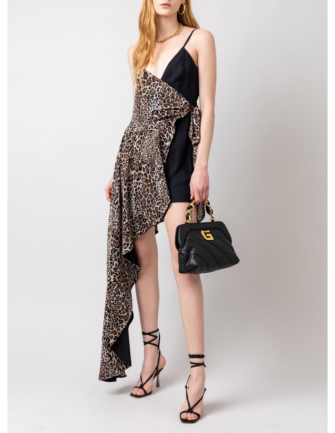 ABITO ASIMMETRICO IN GEORGETTE MACULATA E RASO