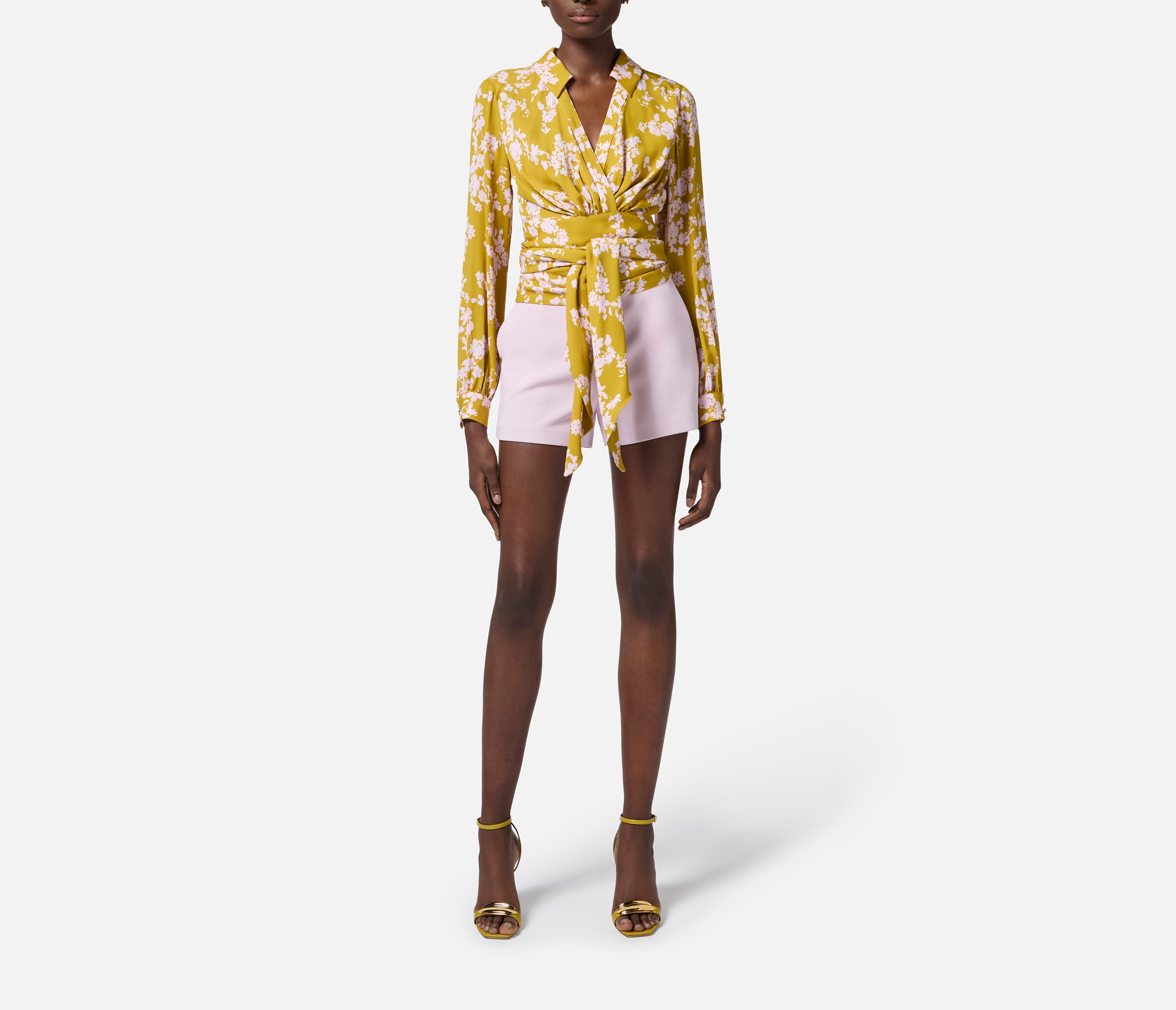 Shorts in crêpe con morsetto e patte
