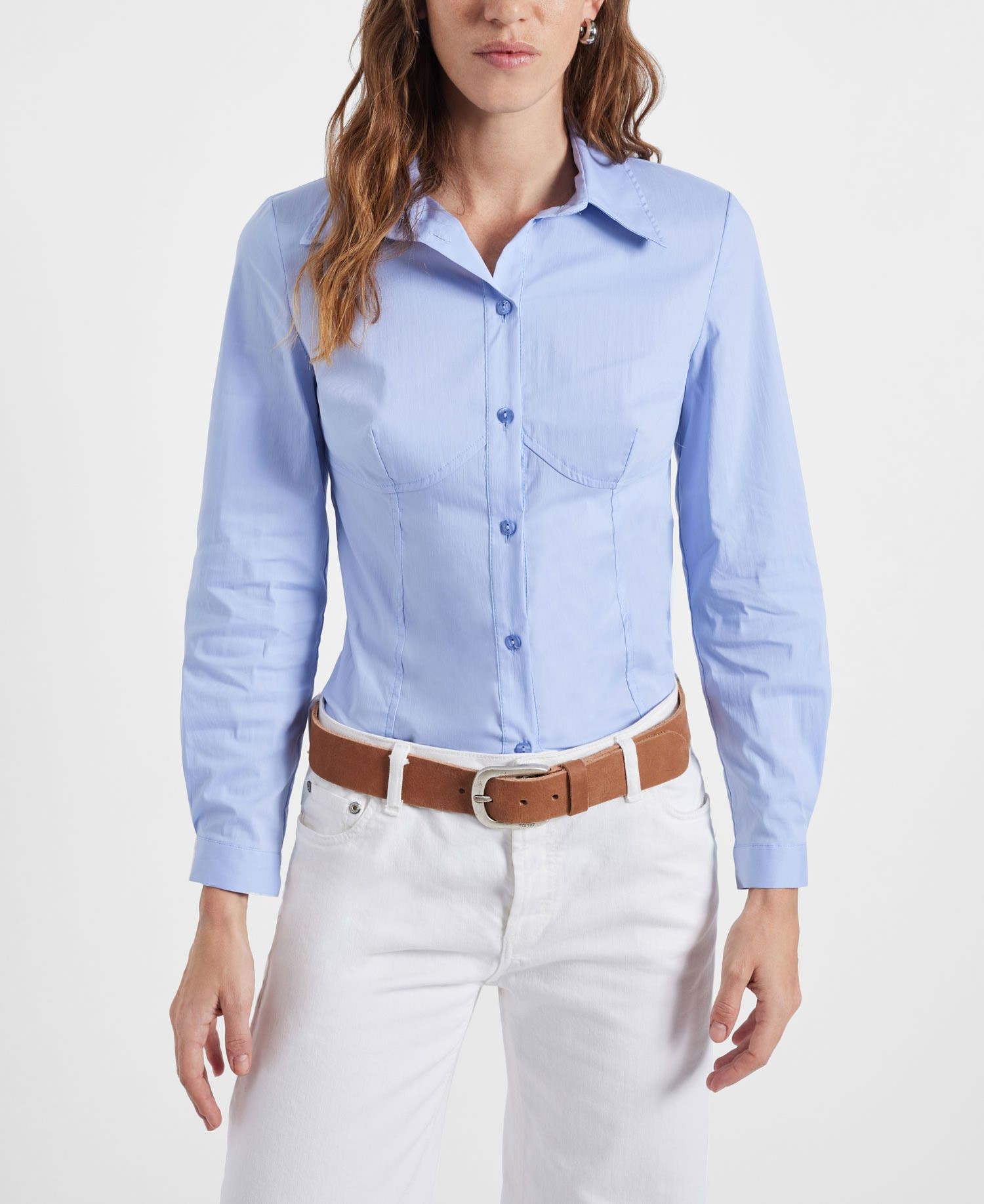 La camicia tinta unita è caratterizzata da colletto classico e cuciture dettaglio