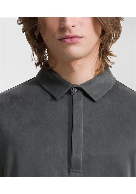 L'eleganza classica e notturna di questa polo si esprime nella sua lucentezza serica e nei dettagli evocativi, come il colletto a camicia chiuso da quattro bottoni in corno, nascosti dalla pattina. Il fit regolare è reso ancora più confortevole dal pregiato tessuto stretch Cupro, leggero e traspirante, con un impareggiabile touch extrafine. La Cupro Polo è una naturale protagonista del look serale estivo, se indossata su un bermuda o un chino in tonalità contrastante. L'iconico logo a microiniezione nero impreziosisce la manica sinistra.