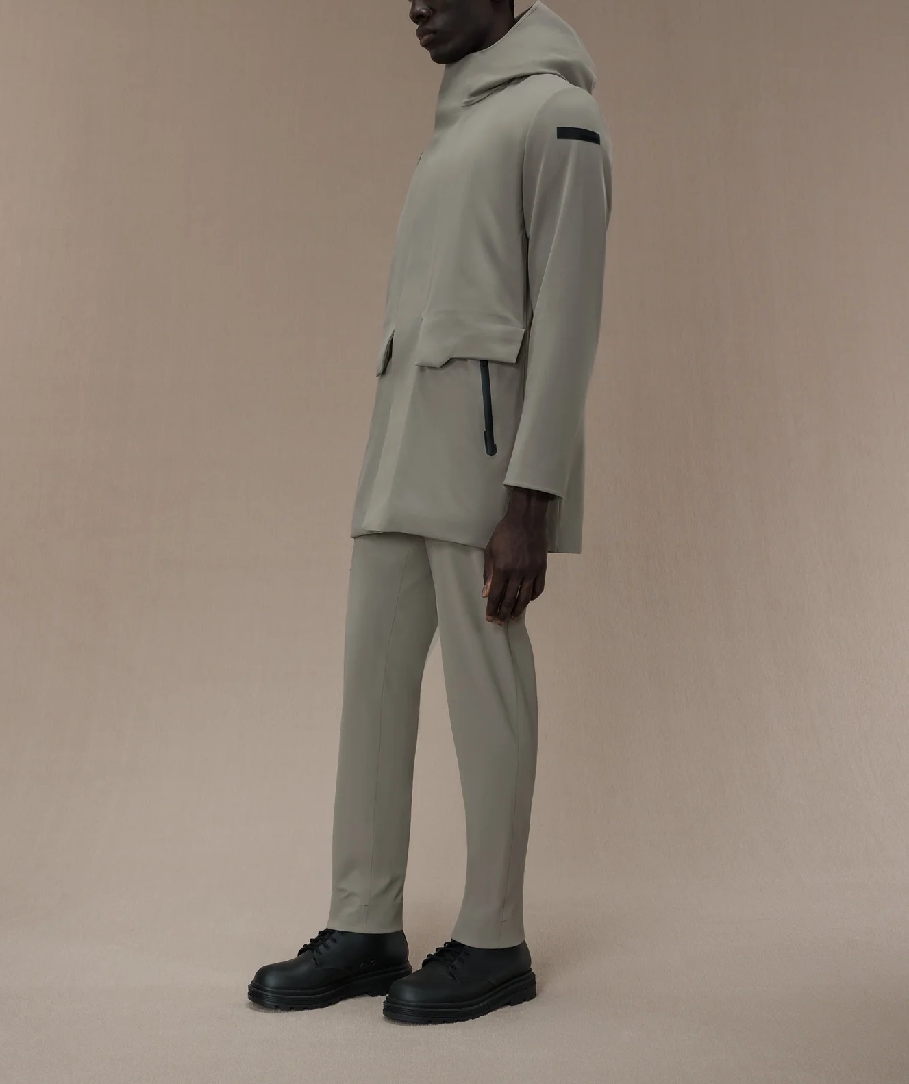 Il comfort, la leggerezza e la versatilità distinguono questa nitida reinterpretazione hi-tech del classico design parka, nell'esclusivo tessuto a membrana Stratofabric#3, stretch e traspirante. Il look super opaco dell'esterno, particolarmente leggero e morbido al tatto, esalta lo stile essenziale e pulitissimo del capospalla provvisto di cappuccio fisso. Il davanti è caratterizzato dalla chiusura integrale a zip nascosta dalla patta, abbottonata a pressione. I tasconi laterali definiti dalle alette sagomate sono accompagnati da due ulteriori tasche a zip termonastrata. La fodera in morbido e caldo velluto presenta il pratico dettaglio di stile del taschino con doppio filetto arancione e la tag a cuore "Made with love, designed in Tuscany". Il logo a microiniezione nero sulla manica sinistra è la nota iconica di un parka innovativo, disponibile nei toni neutri della mezza stagione.