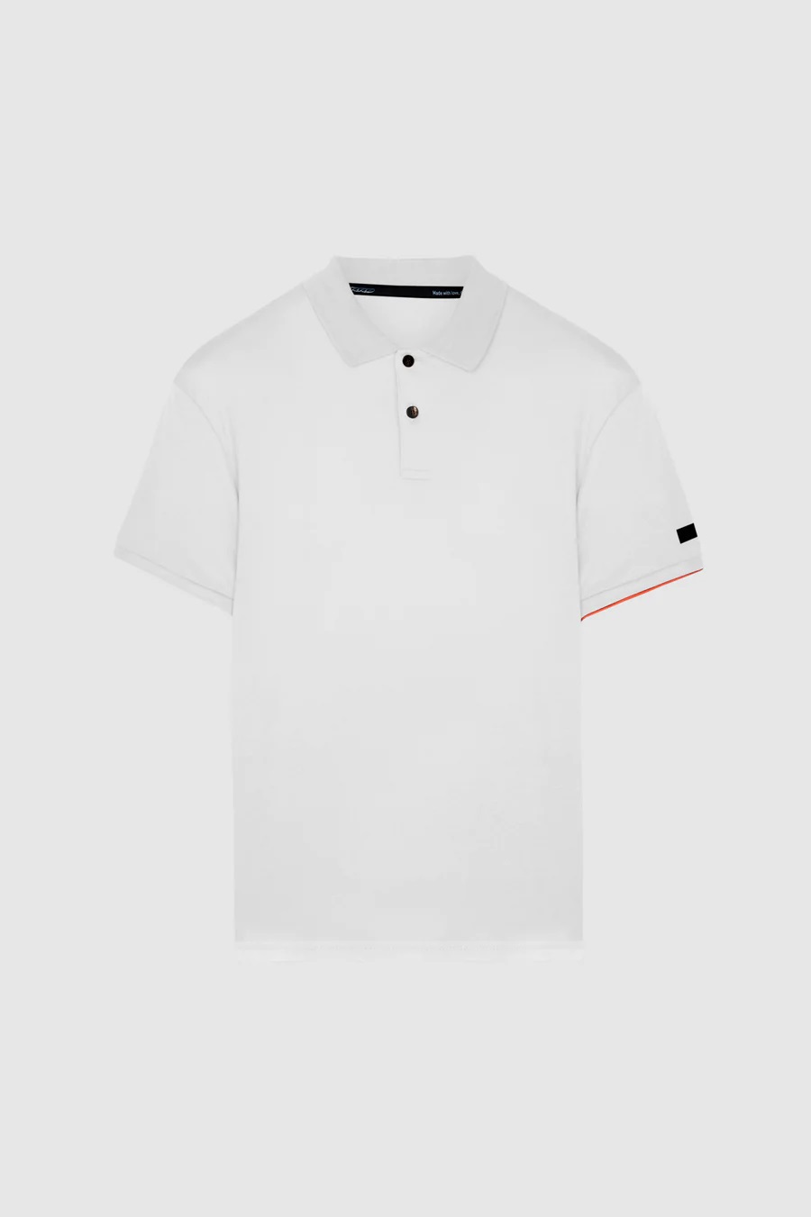 Moderna interpretazione di un classico intramontabile. Questa polo a maniche corte in esclusivo micro piquet elasticizzato dal fit regolare è disponibile in un'ampia palette di colori. Dettagli che fanno la differenza: è impreziosita dal filetto arancione e dall'iconico logo nero applicato sulla manica sinistra. Il colletto è chiuso da due bottoni.