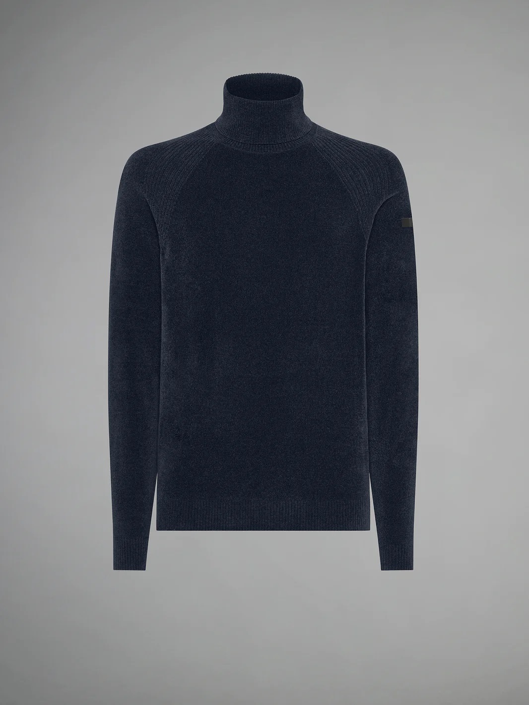 La maglia dolcevita è una protagonista assoluta del guardaroba maschile casual invernale. La creazione in ciniglia dall'effetto vellutato e dal touch estremamente morbido è proposta in bianco ghiaccio e nelle tonalità di stagione. Il fit regolare e il comfort del tessuto elasticizzato sono assecondati dal taglio raglan rifinito a coste delle maniche lunghe, nell'assicurare una grande libertà di movimento. L'eccellente vestibilità è rifinita dalla lavorazione a coste inglesi sul colletto alto, i polsini e il fondo, che presenta un'inconfondibile nota di stile nel filetto arancione sulla parte posteriore. Il logo a microiniezione nero sulla manica sinistra completa il modello.